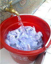 2- ضعها في سطل من الماء و اتركها حتى تتبلل جيدا.